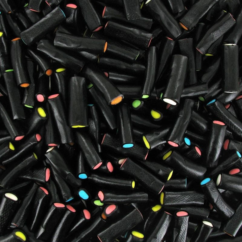 Ingrédients : (sous réserve de modification par le fabricant) Sirop de glucose-fructose, farine de blé (Gluten), sirop de sucre inverti, sirop de mélasse, extrait de réglisse, eau, amidon de pomme de terre, huile végétale (palme) acidifiant E270, amidon modifié de maïs, humectant E422, sel, gélatine de boeuf, arômes, colorants : E100, E129, E133, E102. Allergène : Contient du Gluten.